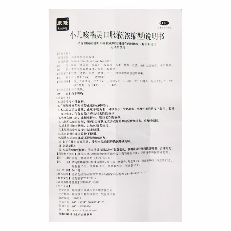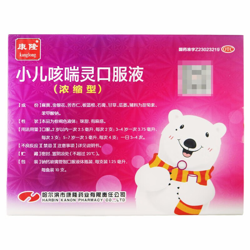 商品名称:康隆 小儿咳喘灵口服液 1.25ml*10支/盒 宣肺清热止咳祛痰 用于上呼吸道感染引起的咳嗽 1盒装